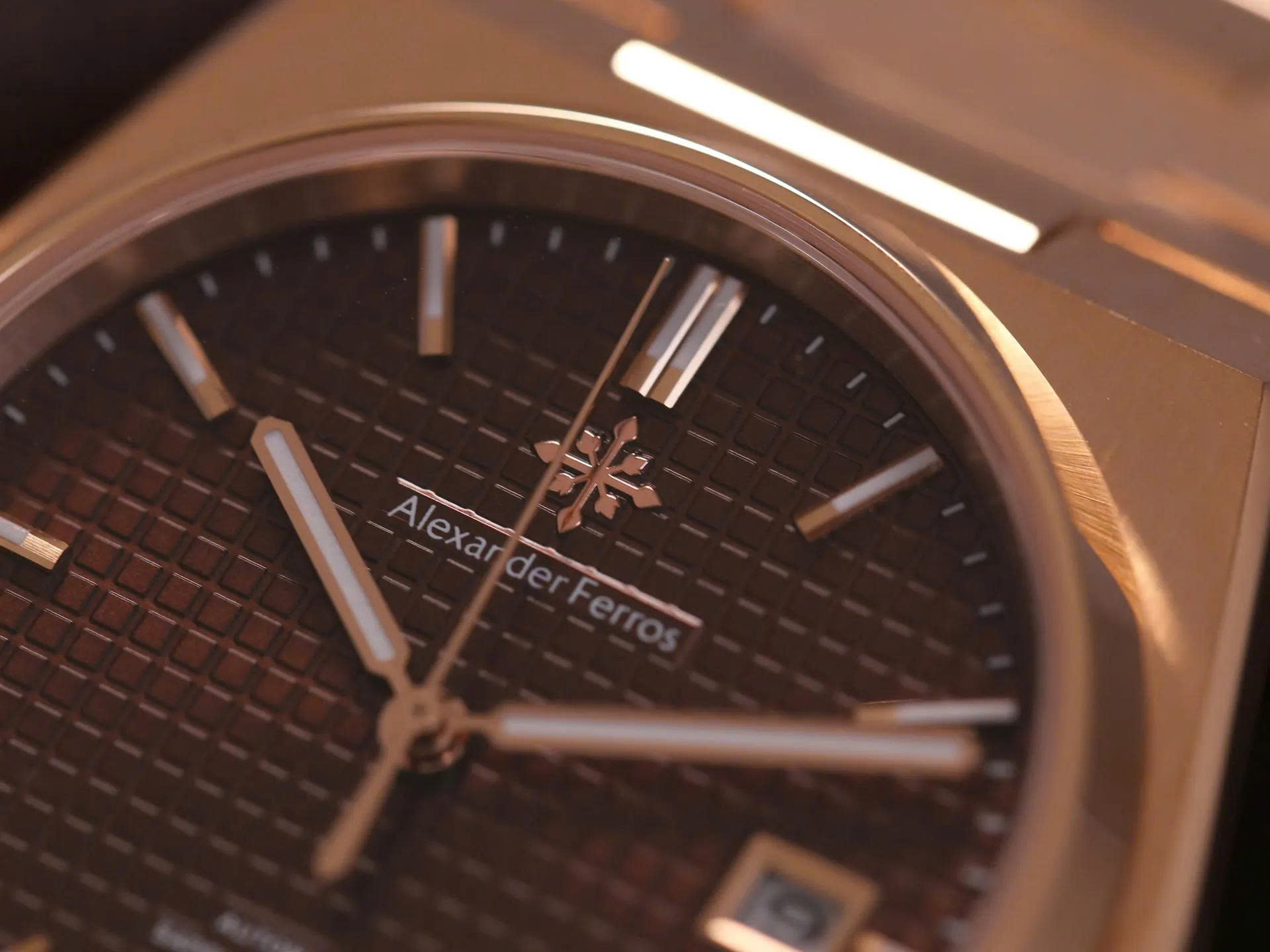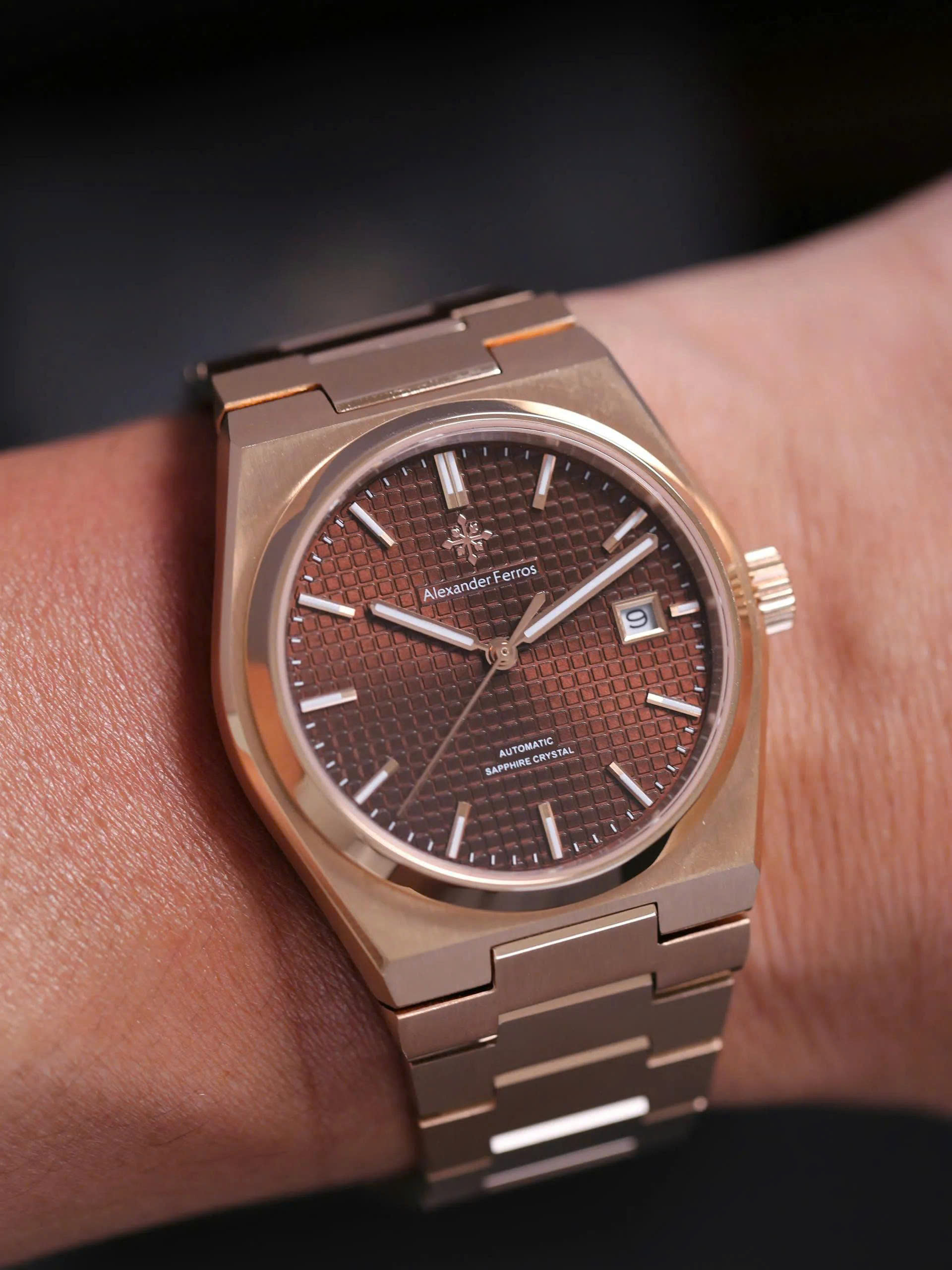 Alexander Ferros 5052 nổi bật với thiết kế tinh xảo, kết hợp giữa phong cách cổ điển và hiện đại. Vỏ đồng hồ được chế tác từ thép không gỉ cao cấp, chống trầy xước, bền bỉ với thời gian. Mặt kính sapphire trong suốt, chống lóa, bảo vệ cơ chế bên trong.