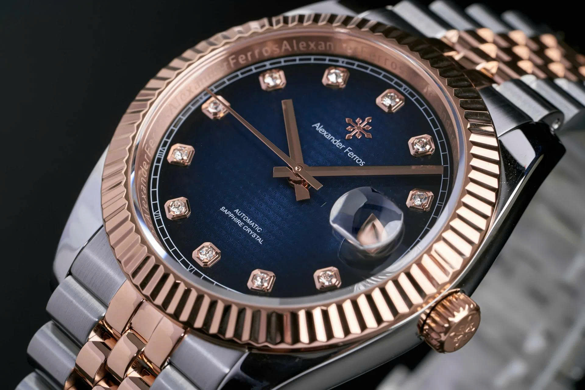 Đồng hồ Alexander Ferros 8032D/05 là mẫu phụ kiện cao cấp được thiết kế sang trọng và thanh lịch, phù hợp cho nhiều phong cách. Sản phẩm nổi bật với dây demi vàng hồng - bạc thời thượng cùng viền khía nổi tinh tế tạo điểm nhấn mạnh mẽ. Mặt số có ba tùy chọn màu sắc: xanh, đen và nâu, đáp ứng sở thích đa dạng của người dùng.