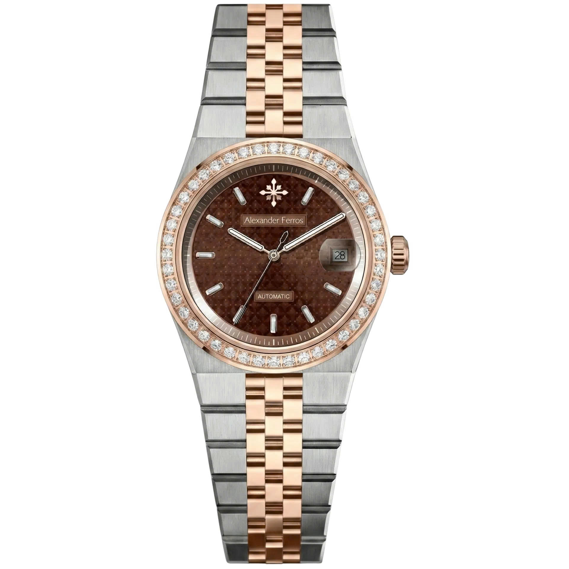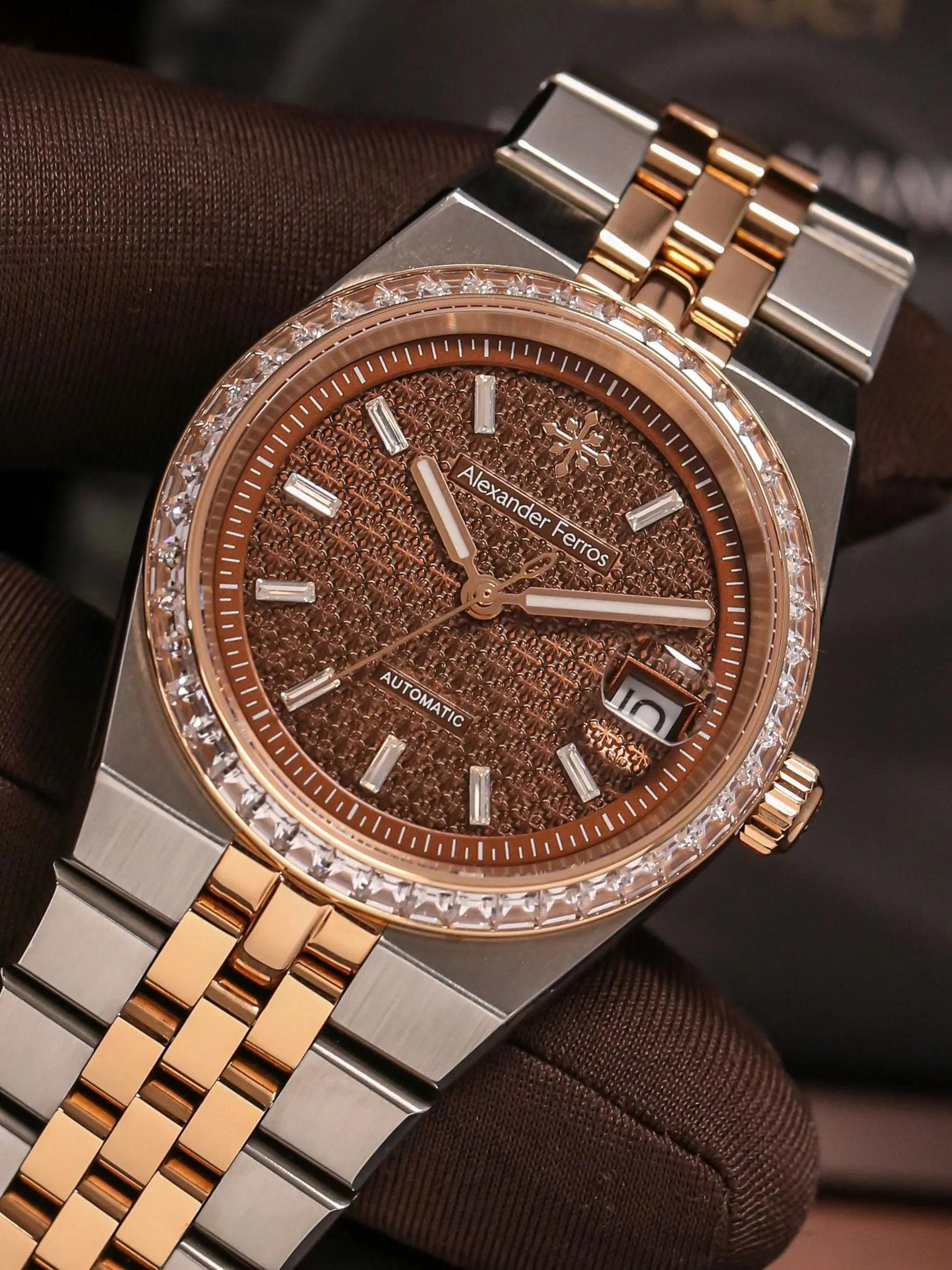 Alexander Ferros 8181R là dòng đồng hồ cao cấp nổi bật với thiết kế demi sang trọng và viền đá đính tinh xảo. Bộ máy Nhật Bản bền bỉ cùng kính sapphire chống trầy giúp sản phẩm vừa thời trang vừa chất lượng, lý tưởng cho những ai yêu sự đẳng cấp và tinh tế.