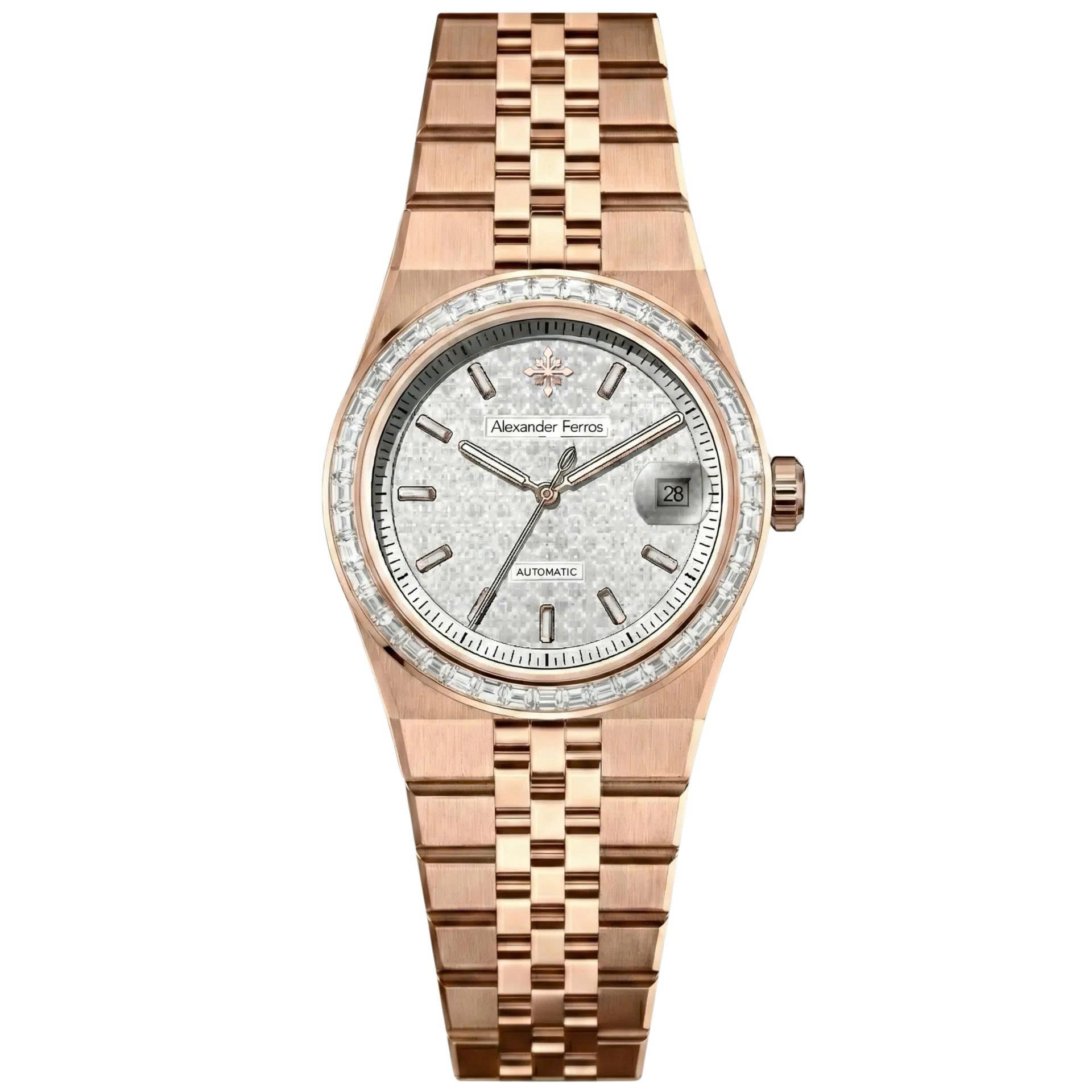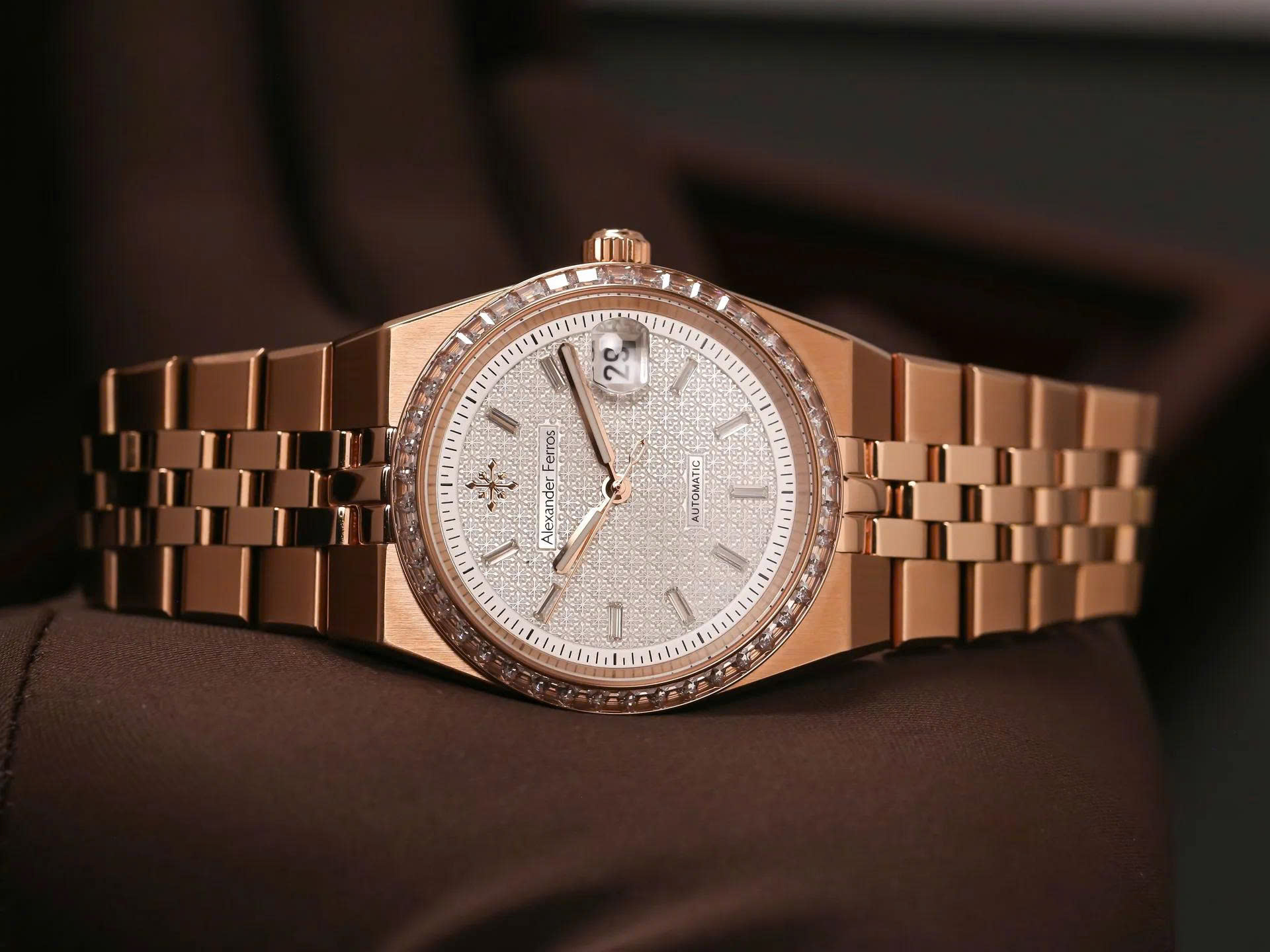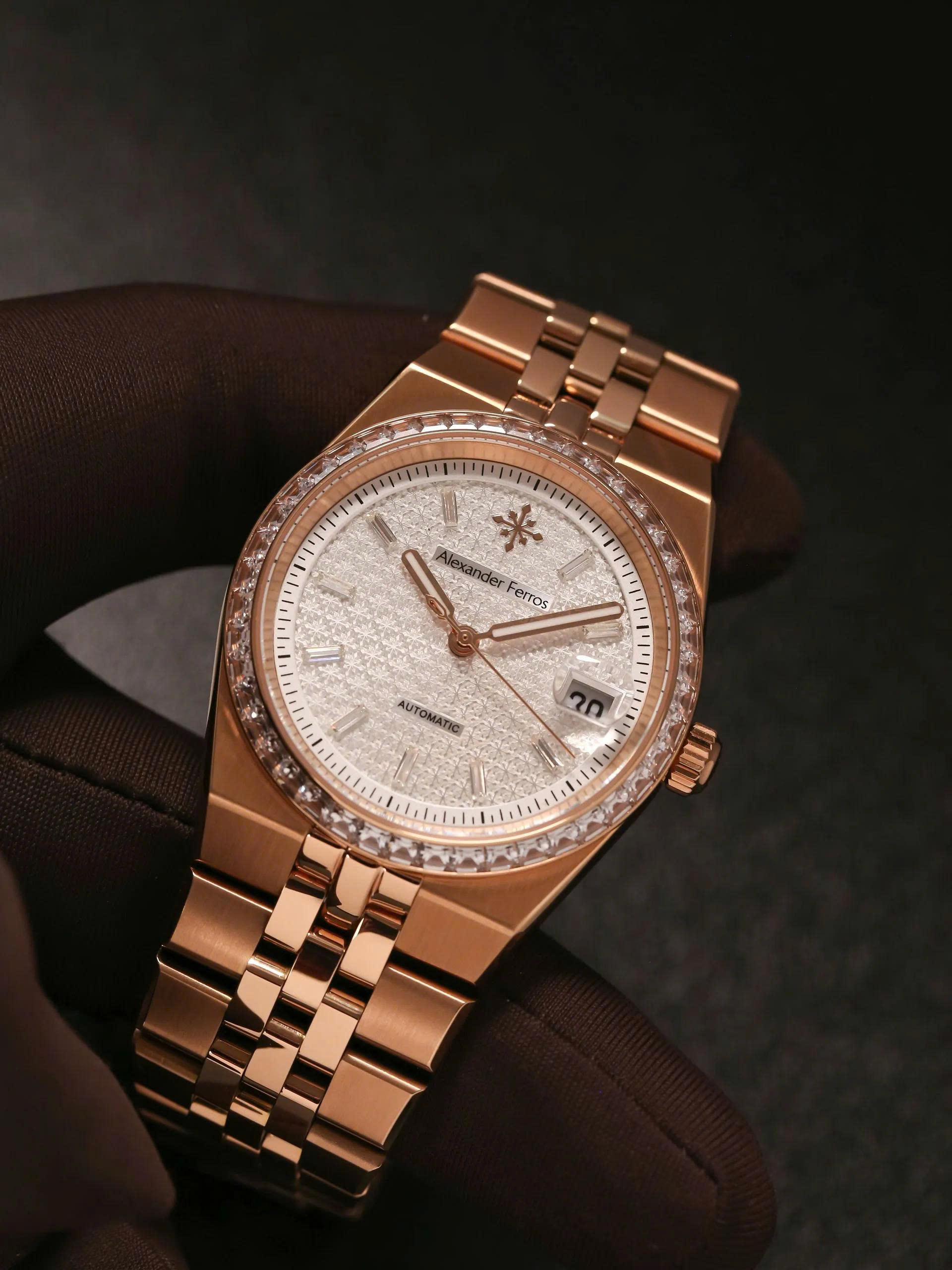 Alexander Ferros 8181R là dòng đồng hồ cao cấp nổi bật với thiết kế demi sang trọng và viền đá đính tinh xảo. Bộ máy Nhật Bản bền bỉ cùng kính sapphire chống trầy giúp sản phẩm vừa thời trang vừa chất lượng, lý tưởng cho những ai yêu sự đẳng cấp và tinh tế.