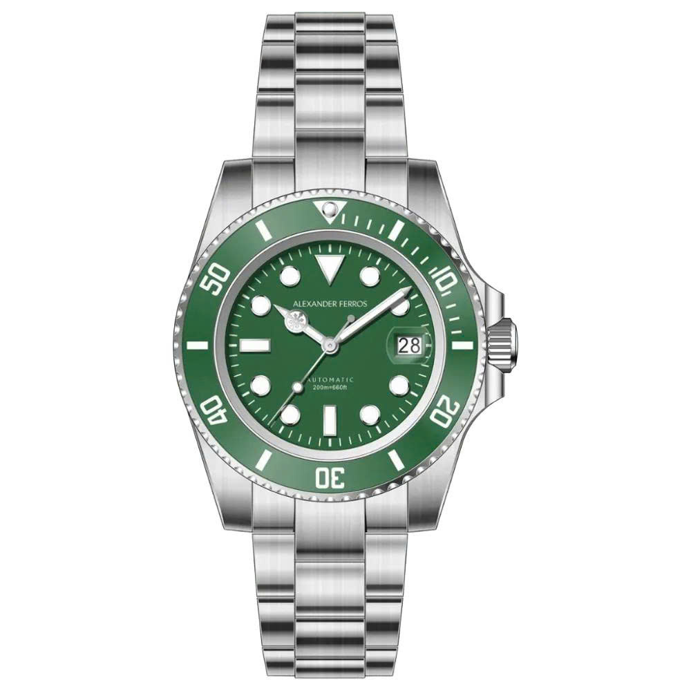 Mang đậm hơi thở của những chiếc đồng hồ lặn trứ danh, Alexander Ferros 8352 là sự kết hợp hoàn hảo giữa ngoại hình mạnh mẽ, nam tính và khả năng vận hành bền bỉ. Đây là cỗ máy thời gian lý tưởng cho các quý ông yêu thích phong cách thể thao năng động hoặc thường xuyên tiếp xúc với nước.