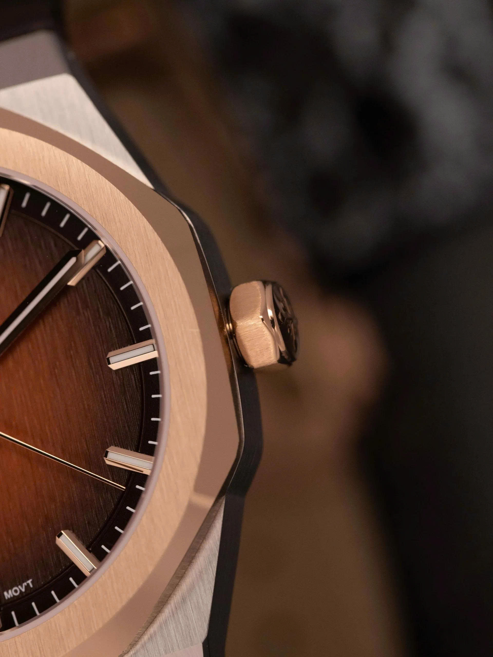 Vỏ được chế tác từ thép không gỉ cao cấp, mang đến sự bền bỉ và cảm giác chắc chắn khi đeo. Viền bezel cách điệu với các đường cắt góc cạnh, tăng thêm vẻ nam tính và năng động.