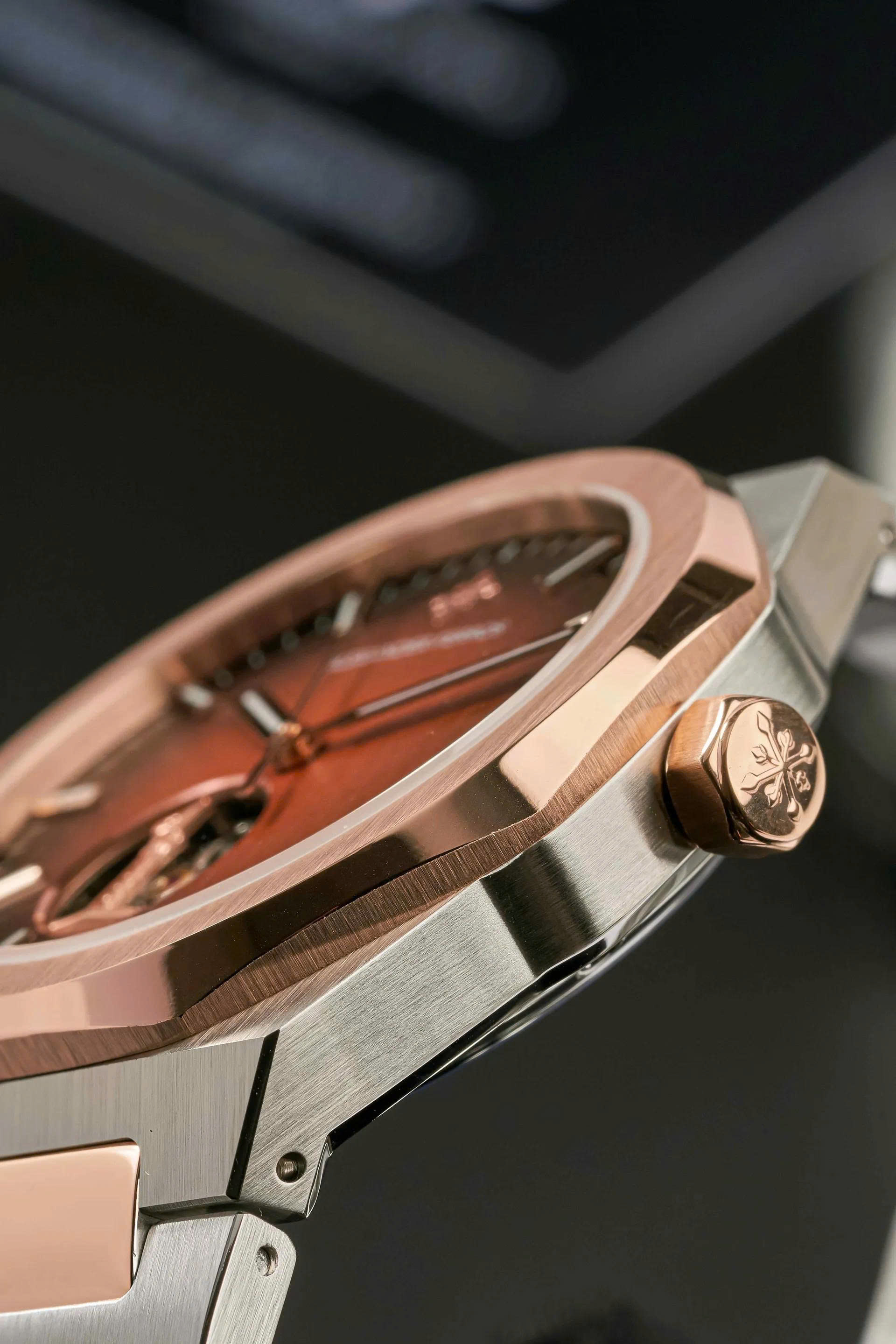 Vỏ được chế tác từ thép không gỉ cao cấp, mang đến sự bền bỉ và cảm giác chắc chắn khi đeo. Viền bezel cách điệu với các đường cắt góc cạnh, tăng thêm vẻ nam tính và năng động.