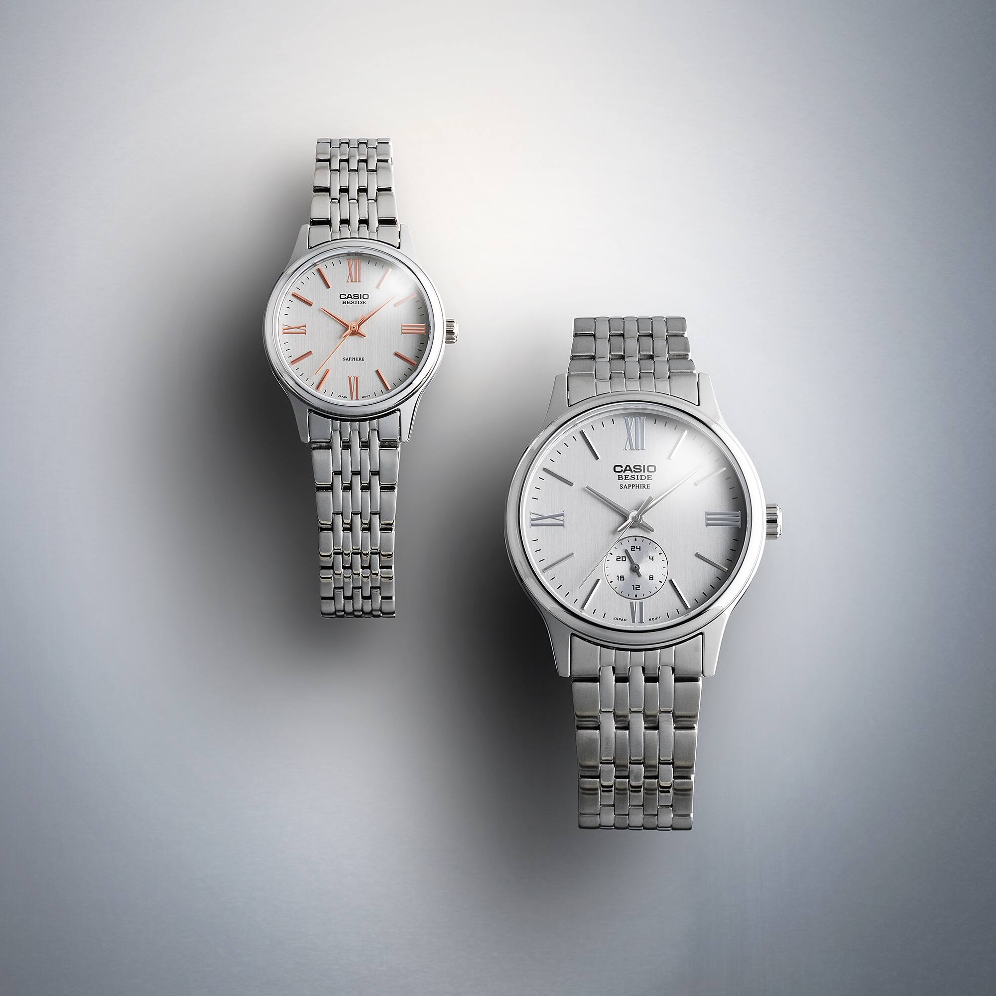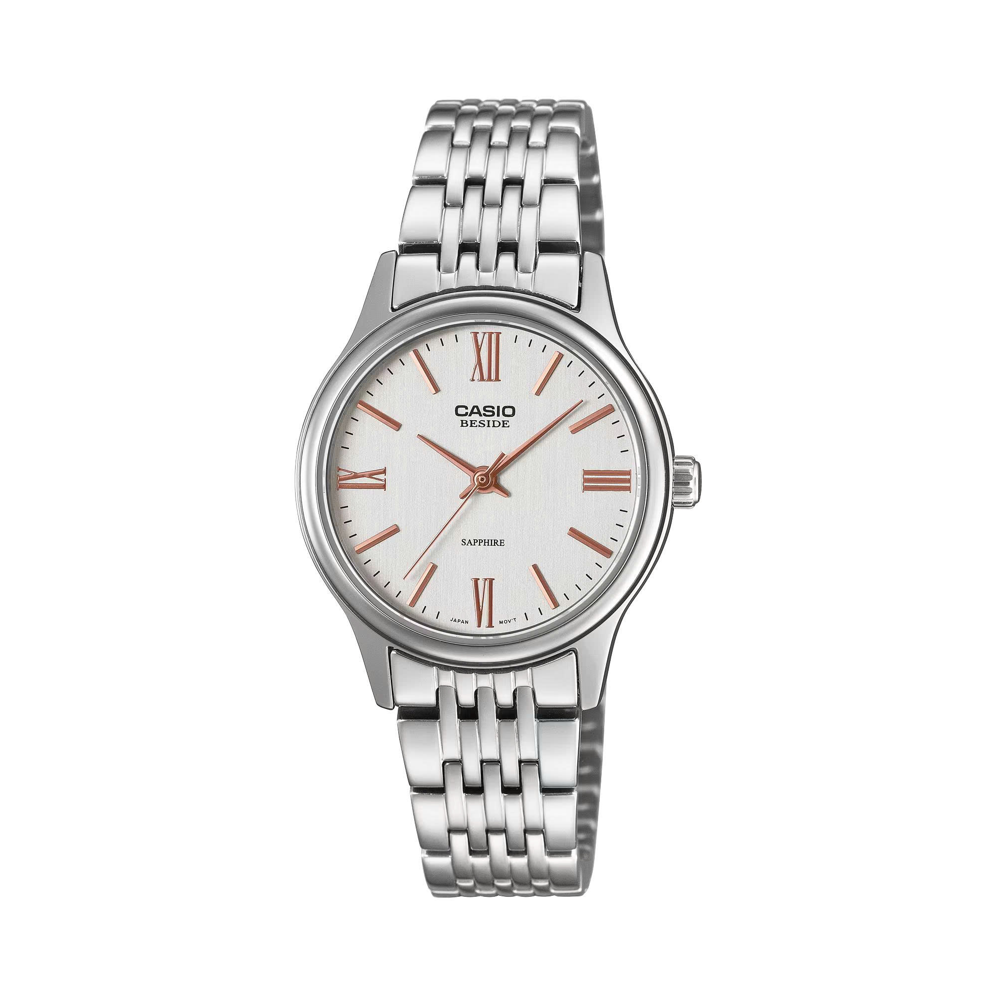 Tinh giản thanh lịch, tinh tế bóng bẩy — dòng đồng hồ Beside dành cho phong cách thời trang quốc tế. Đơn giản và tinh tế, mẫu đồng hồ cổ điển vượt thời gian này sẽ đồng hành cùng bạn từ các cuộc họp kinh doanh đến những dịp trang trọng, bất kể lịch trình của bạn là gì. Dòng sản phẩm đa dạng này có sản phẩm dành cho mọi người và mọi phong cách, dù bạn đang tìm kiếm một dây đeo kim loại sang trọng, vừa vặn và chắc chắn hay một dây đeo da cổ điển, giản dị hơn. Mặt kính saphia chống xước với độ trong suốt cao giúp bạn dễ đọc. Với tất cả những lựa chọn này, chắc chắn bạn sẽ tìm thấy kích thước và thiết kế hoàn hảo cho mình. Hoặc bạn có thể chọn một cặp đồng hồ phù hợp để chia sẻ với người đặc biệt của mình. Mang đến nét thanh lịch tinh tế cho mỗi ngày của bạn với đồng hồ Beside từ Casio.