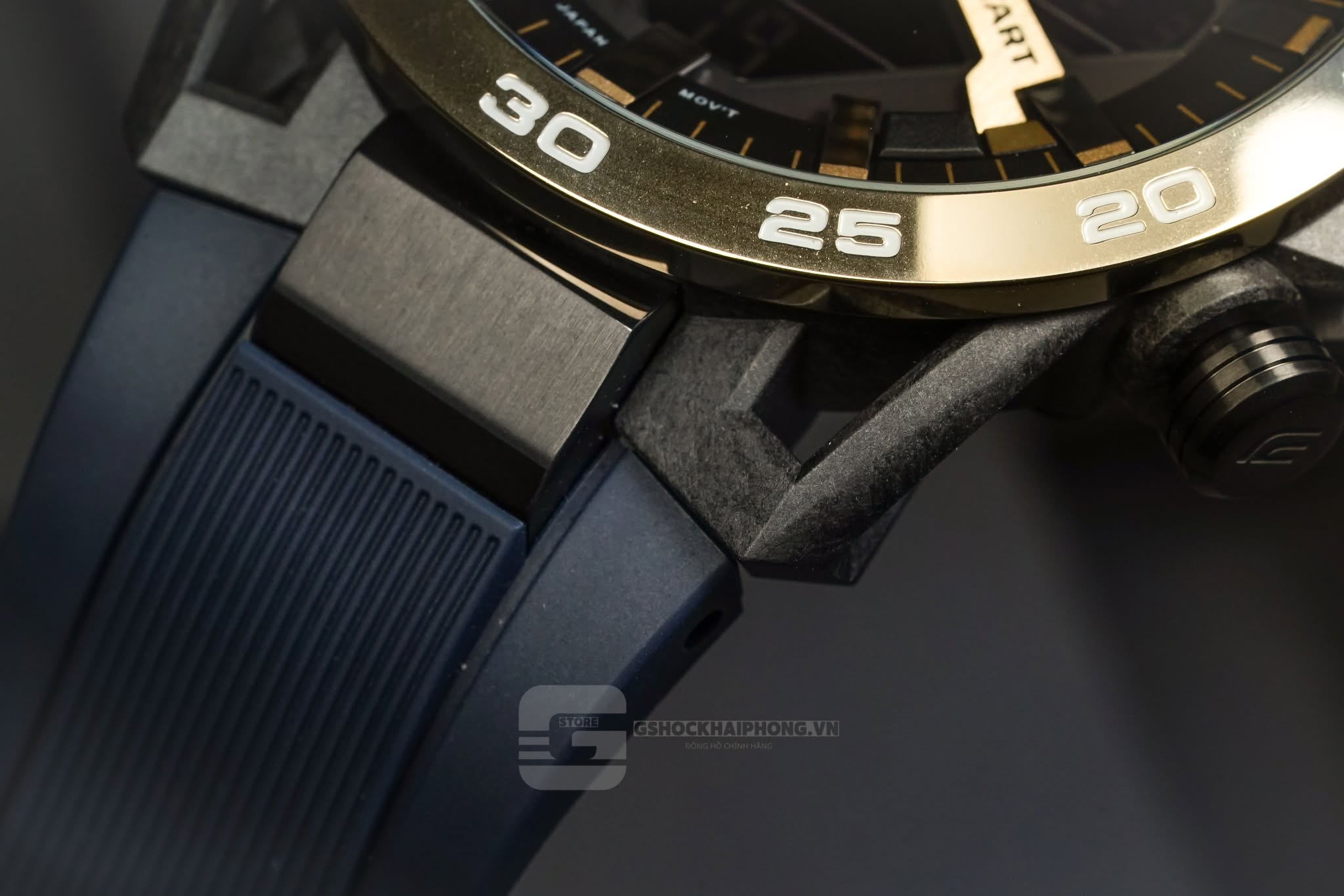 Bạn yêu thích cảm giác lái xe trên những con đường tối? Ánh sáng rực rỡ của đèn pha và đèn đường xuyên qua màu xanh thẳm của bầu trời đêm? Vậy thì bạn sẽ thích chiếc đồng hồ EDIFICE được thiết kế để nắm bắt cảm giác lái xe vào ban đêm, được thiết kế phù hợp cho những người đam mê ô tô. Cảm giác hào hứng khi lái xe trên đường phố vào ban đêm được thể hiện bằng hiệu ứng chuyển màu rực rỡ trên đường gờ — bầu trời đêm được tái tạo bằng lớp mạ ion màu xanh dương đậm chuyển dần sang màu vàng gợi nhớ đến ánh đèn đô thị vào buổi tối. Hiệu ứng chuyển màu giữa hai màu này lần đầu tiên xuất hiện trên EDIFICE, tạo nên một đường gờ tuyệt đẹp với độ sáng bóng tinh tế cũng được phản ánh trên thanh chữ X của mặt số. ECB-2000 SOSPENSIONE, chiếc đồng hồ được mô phỏng theo cấu hình của hệ thống giảm xóc trên xe đua, được thiết kế lấy cảm hứng từ bầu trời đêm với vỏ nhựa được gia cố bằng sợi carbon để mang lại sự thoải mái nhẹ nhàng mà cổ tay của bạn sẽ yêu thích. Đồng bộ với điện thoại thông minh của bạn qua Bluetooth® để thao tác dễ dàng với đồng hồ và hiển thị giờ hiện hành chính xác. Chỉ cần nhấn vào ứng dụng để dễ dàng chọn các thành phố theo giờ thế giới và dễ dàng quản lý các chức năng tiện dụng khác. Đồng hồ này cũng vô cùng thiết thực nhờ có hệ thống sạc Tough Solar có thể sạc đồng hồ từ ánh sáng mặt trời hoặc thậm chí cả ánh sáng đèn huỳnh quang.