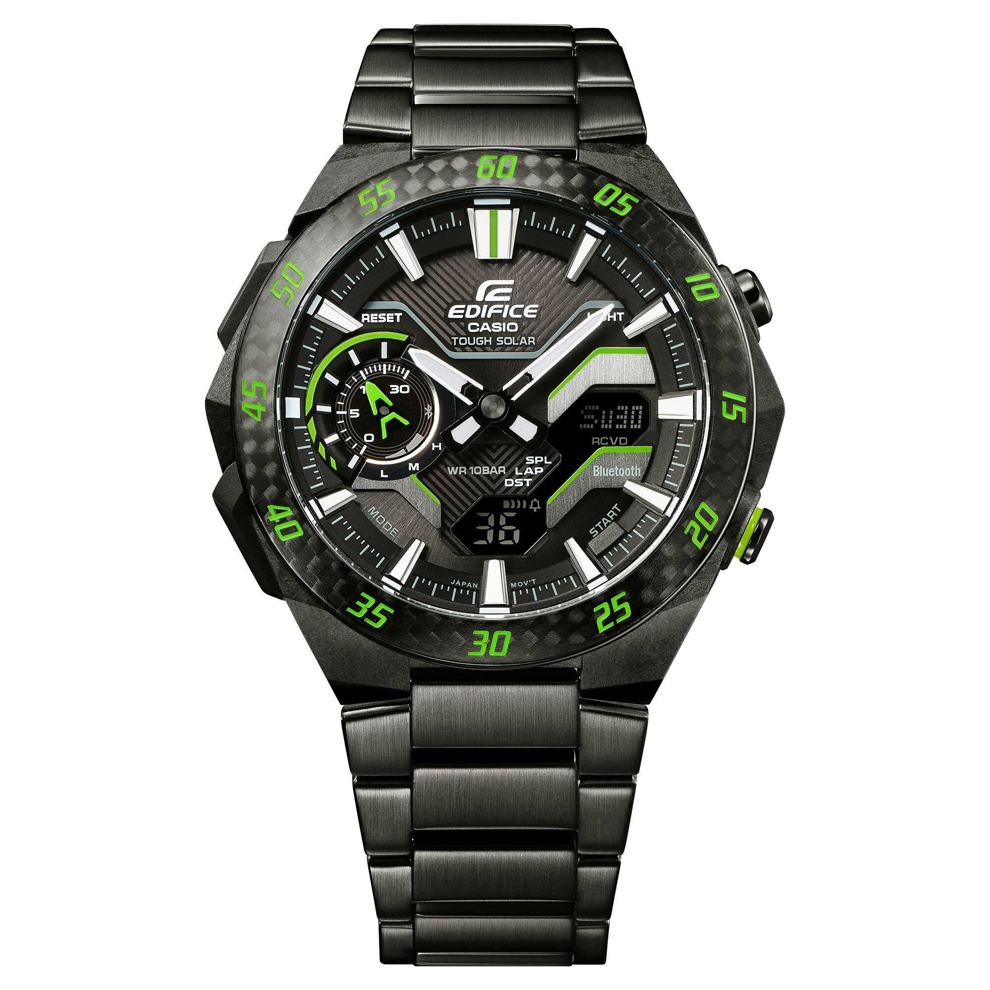 Giới thiệu những biến thể mới của EDIFICE WINDFLOW ECB-2200, một chiếc đồng hồ được thiết kế để gợi lên luồng gió thổi mạnh từ một chiếc xe đua công thức. Vỏ nhựa gia cố bằng sợi carbon, gờ làm bằng sợi carbon và dây đeo bằng thép không gỉ mạ ion đen được kết hợp với những điểm nhấn màu vàng hoặc xanh lá gợi nhớ đến đường đua chuyên nghiệp.