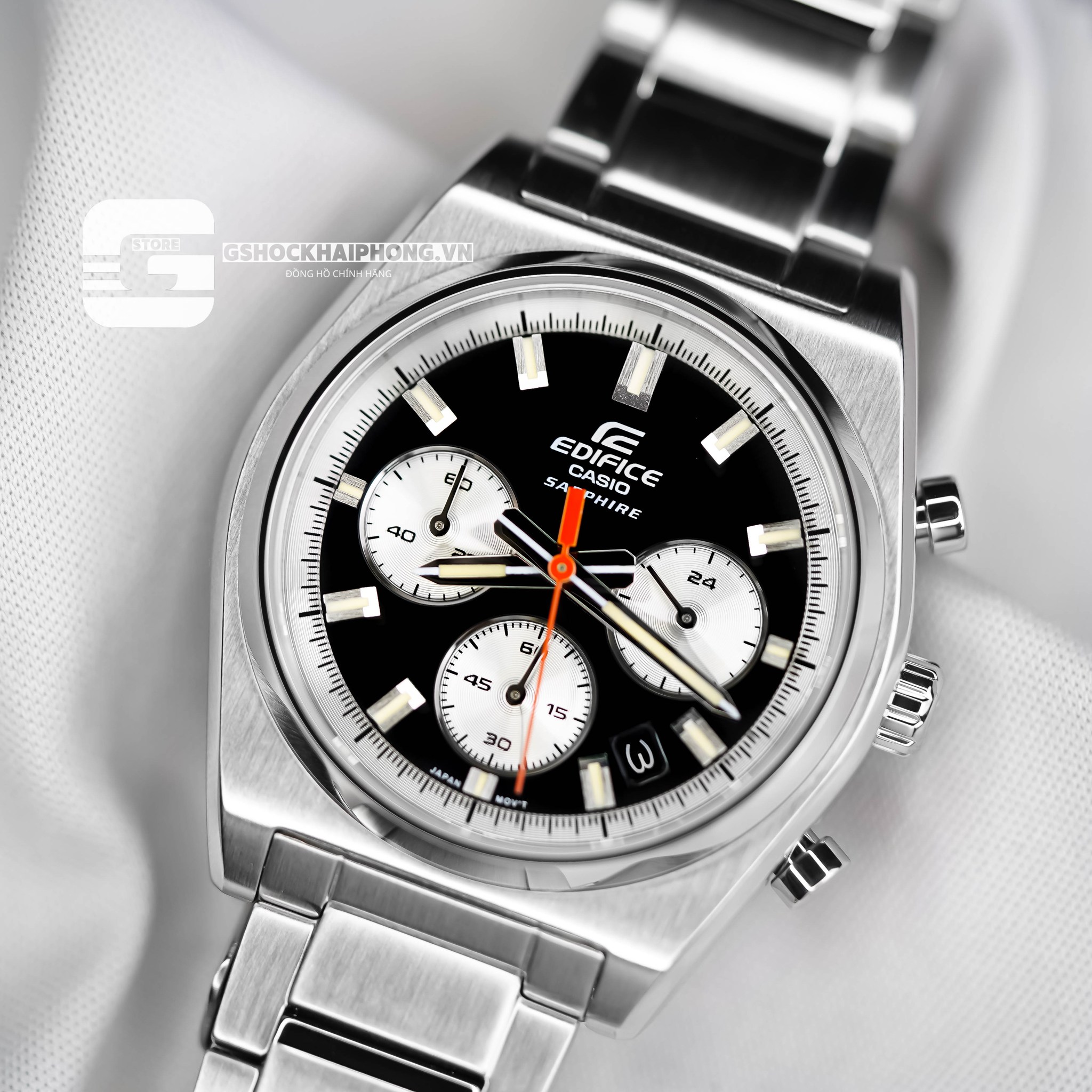 Giới thiệu mẫu đồng hồ thể thao bấm giờ EDIFICE lấy cảm hứng từ chiếc xe thể thao cổ điển.Kim chỉ số nổi bật kết hợp bố cục mặt số 3-6-9 huyền thoại trong một thiết kế thể thao vượt thời gian. Đường kính nhỏ hơn của vỏ máy mang đến vẻ ngoài thanh lịch cho tốc độ tuyệt đối.Với thiết kế tinh thể sapphire, vỏ máy bằng thép không gỉ và dây đeo bằng thép không gỉ bền bỉ, chiếc đồng hồ này có khả năng chống nước ở độ sâu lên đến 100m.Chiếc đồng hồ bấm giờ cổ điển mang hơi hướng thể thao này sẽ phù hợp cả trong sinh hoạt thường nhật lẫn môi trường công sở.