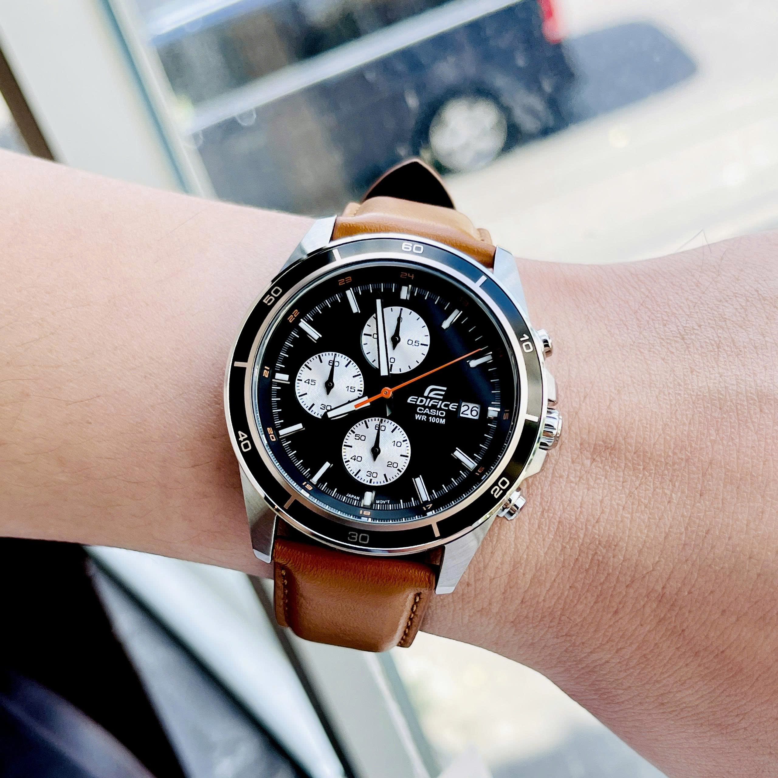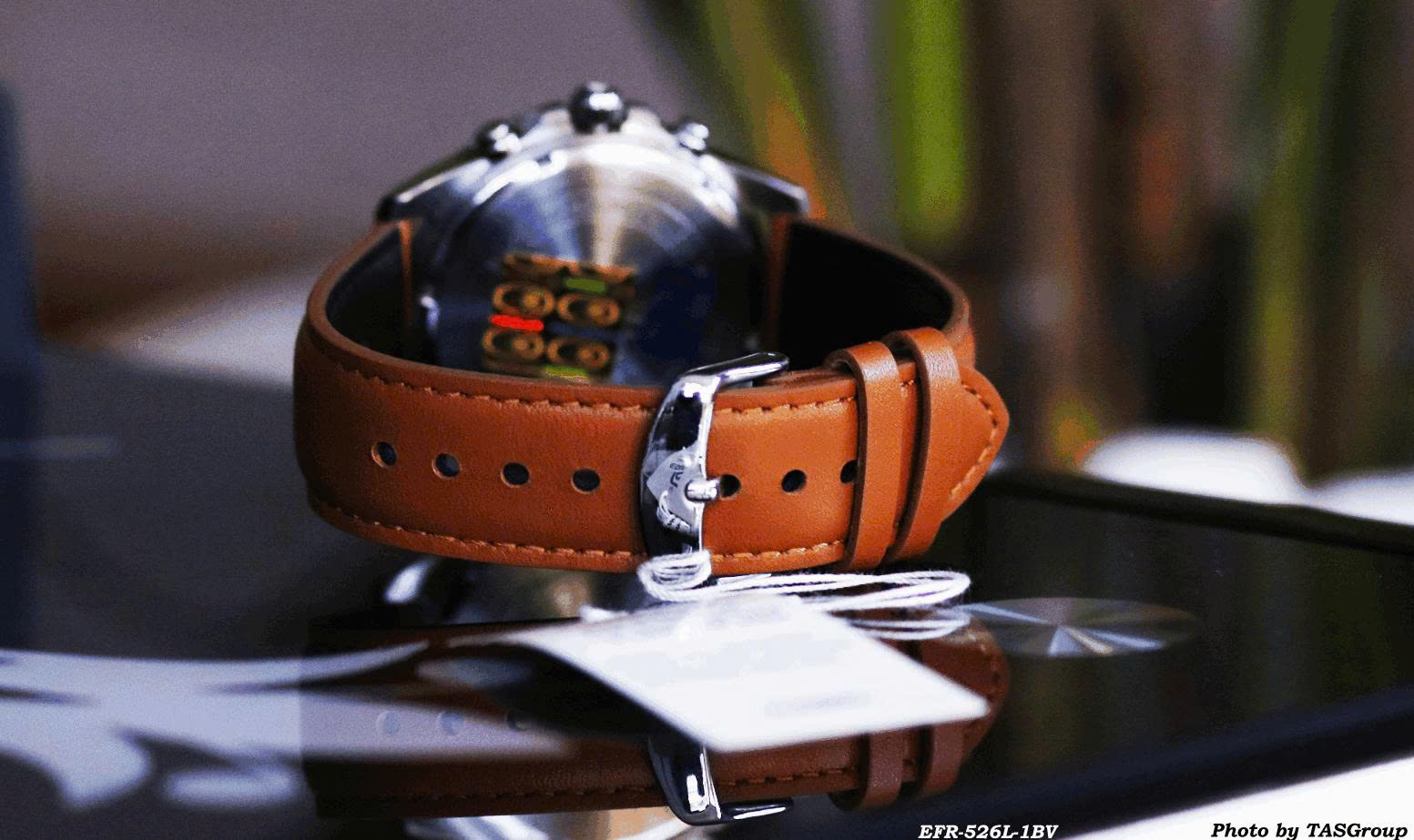 Logo EDIFICE được dập trên núm vặn và nắp sau