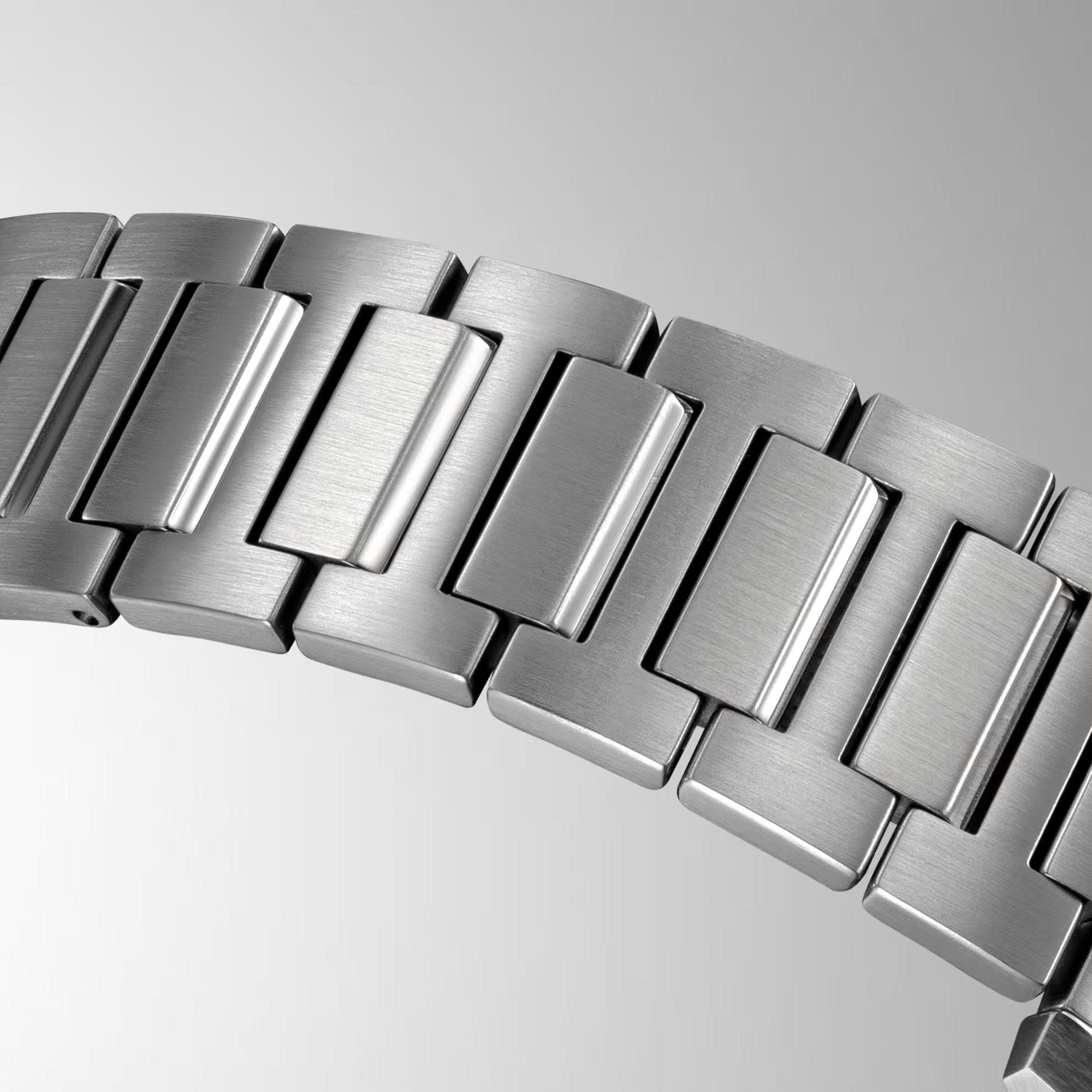 Mặt số có kết cấu gợi nhớ đến nội thất của một chiếc ô tô cao cấp, với các vạch chỉ giờ nổi và gờ bằng thép không gỉ được gia công tỉ mỉ, làm nổi bật vẻ ngoài lấp lánh, thanh lịch.