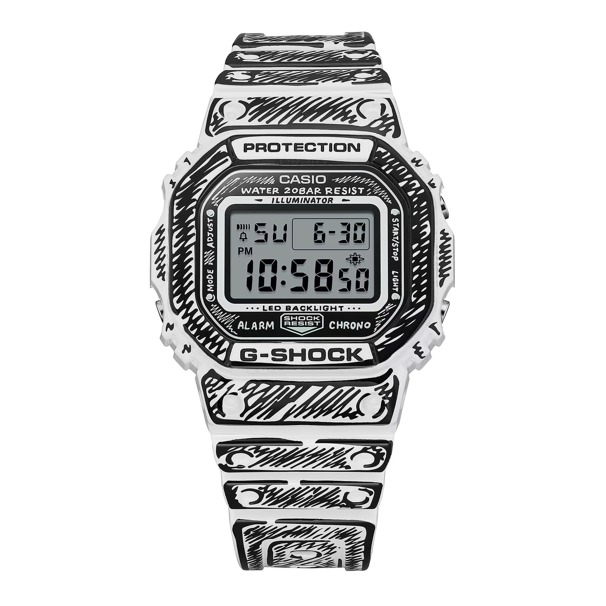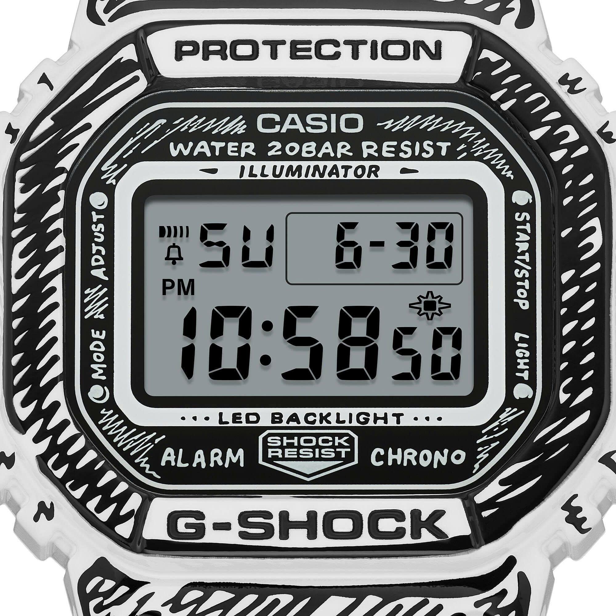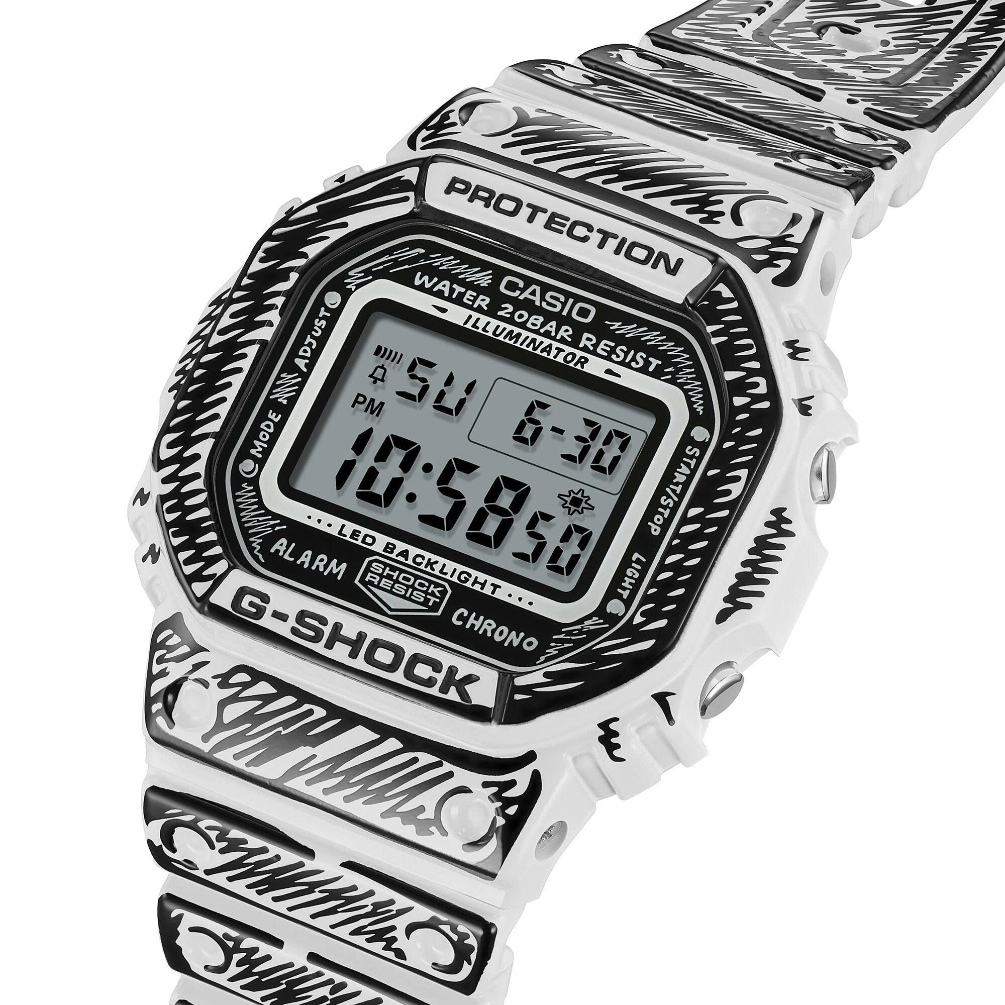 Kể từ khi ra mắt vào năm 1983, G-SHOCK đã liên tục phát triển thông qua sự hợp tác với nhiều nền văn hóa khác nhau. Chúng tôi tự hào giới thiệu sự hợp tác mới với nghệ sĩ kiêm nhà thiết kế Joshua Vides. Những họa tiết đơn sắc, mang phong cách truyện tranh đặc trưng của Joshua Vides được áp dụng trên toàn bộ chiếc đồng hồ, từ mặt số đến gờ và dây đeo. Chiếc DW-5600 nền trắng được tô điểm bằng các họa tiết đen và lớp phủ bóng, tạo nên sự tương phản mạnh mẽ và vẻ ngoài nổi bật. Điều này làm nổi bật tác phẩm nghệ thuật vẽ tay trên mặt số của Joshua, và khi đèn nền được kích hoạt, họa tiết “Hình nón” đặc trưng của anh sẽ hiện ra. Đây là phiên bản đặc biệt được trình bày trong hộp thiết kế riêng. Giới thiệu về Joshua Vides Joshua Vides là một nghệ sĩ và nhà thiết kế đương đại được quốc tế công nhận, nổi tiếng với phong cách vẽ tay đen trắng đặc trưng. Lấy cảm hứng từ truyện tranh, nghệ thuật đường phố và thiết kế công nghiệp, anh biến những vật dụng, phương tiện và không gian hàng ngày thành những môi trường đồ họa hai chiều ấn tượng. Lĩnh vực hoạt động đa ngành của anh bao gồm tranh tường, sắp đặt, điêu khắc và hợp tác với các thương hiệu trên toàn thế giới.