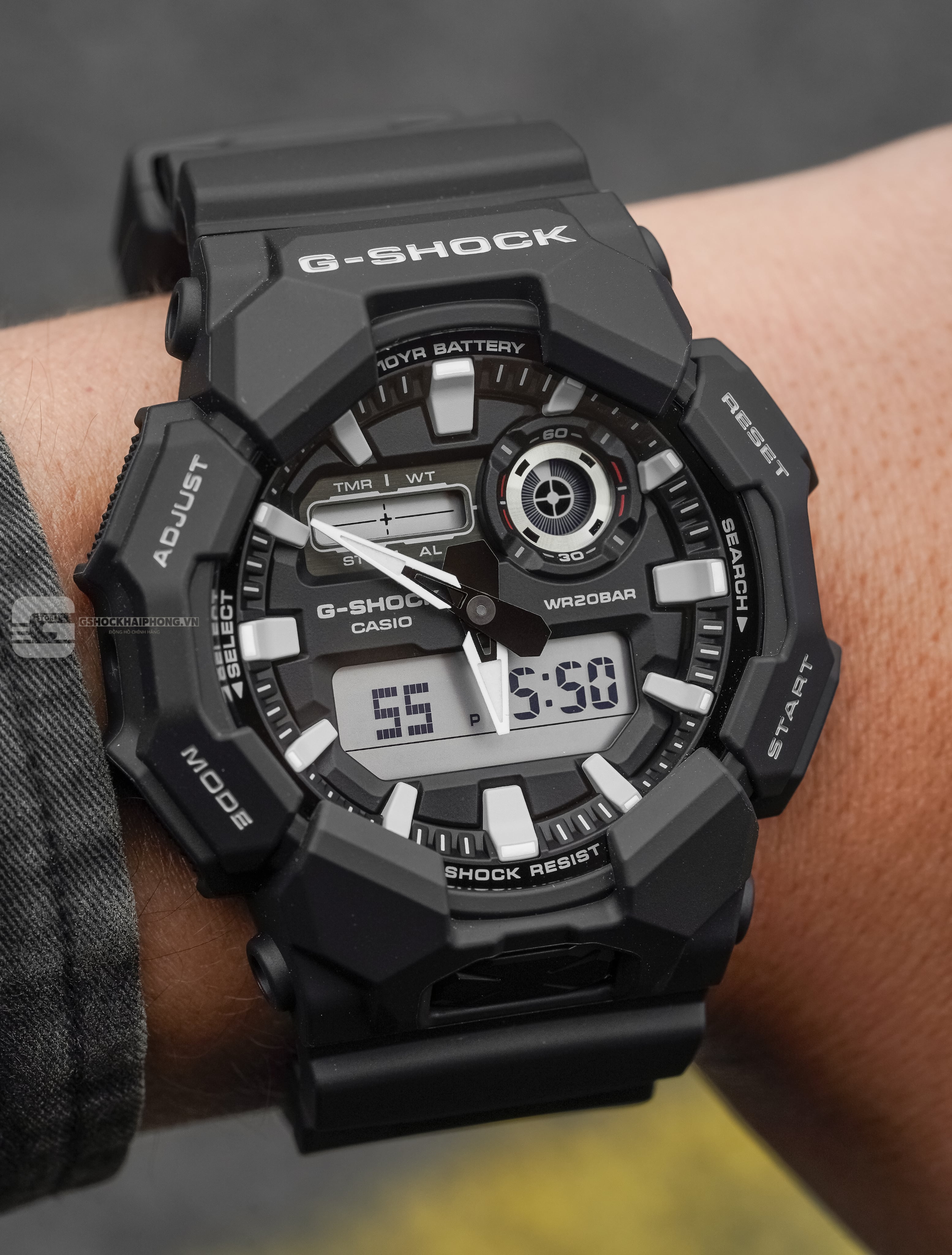 Bạn sẽ ít phải thay pin hơn và không cần thường xuyên lo lắng về việc đó vì G-SHOCK vỏ lớn có tuổi thọ pin 10 năm.Mẫu GA-010 kết hợp đồng hồ kim và kỹ thuật số có các tính năng tiện dụng như hiển thị giờ thế giới và đồng hồ bấm giờ, cũng như đèn LED có độ sáng cao, có thể dễ dàng sử dụng nhờ có nút bấm lớn ở phía trước vỏ, đảm bảo có thể nhìn được ngay cả trong bóng tối. Mẫu G-SHOCK này được làm bằng nhựa resin sinh học và có tuổi thọ pin 10 năm, vì vậy đây là lựa chọn tuyệt vời nếu bạn muốn giảm tác động đến môi trường. Sản phẩm phù hợp với phong cách công sở với nhiều mẫu kết hợp sắc đen cho ra một thiết kế tuyệt vời, thích hợp sử dụng thường ngày và khi làm việc.