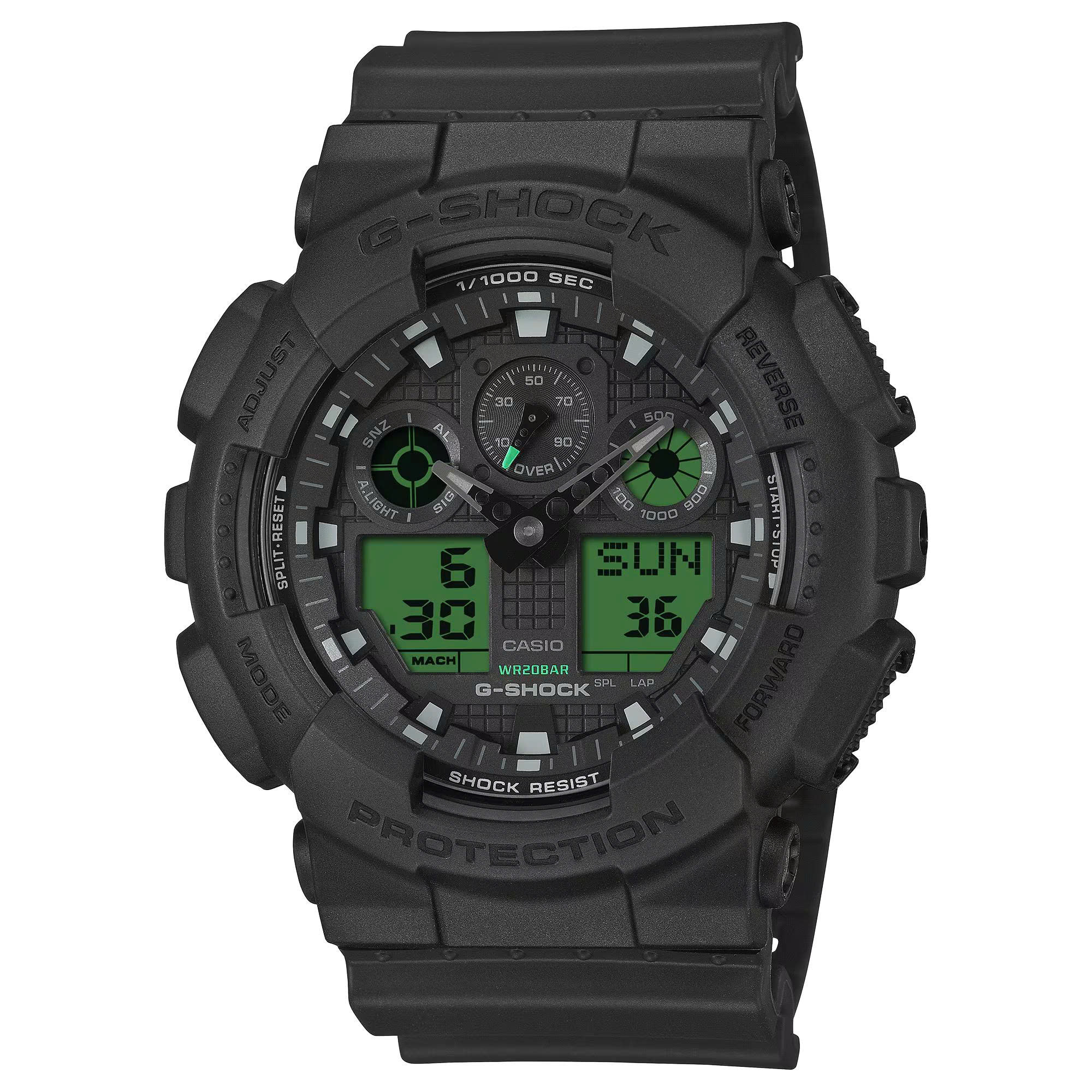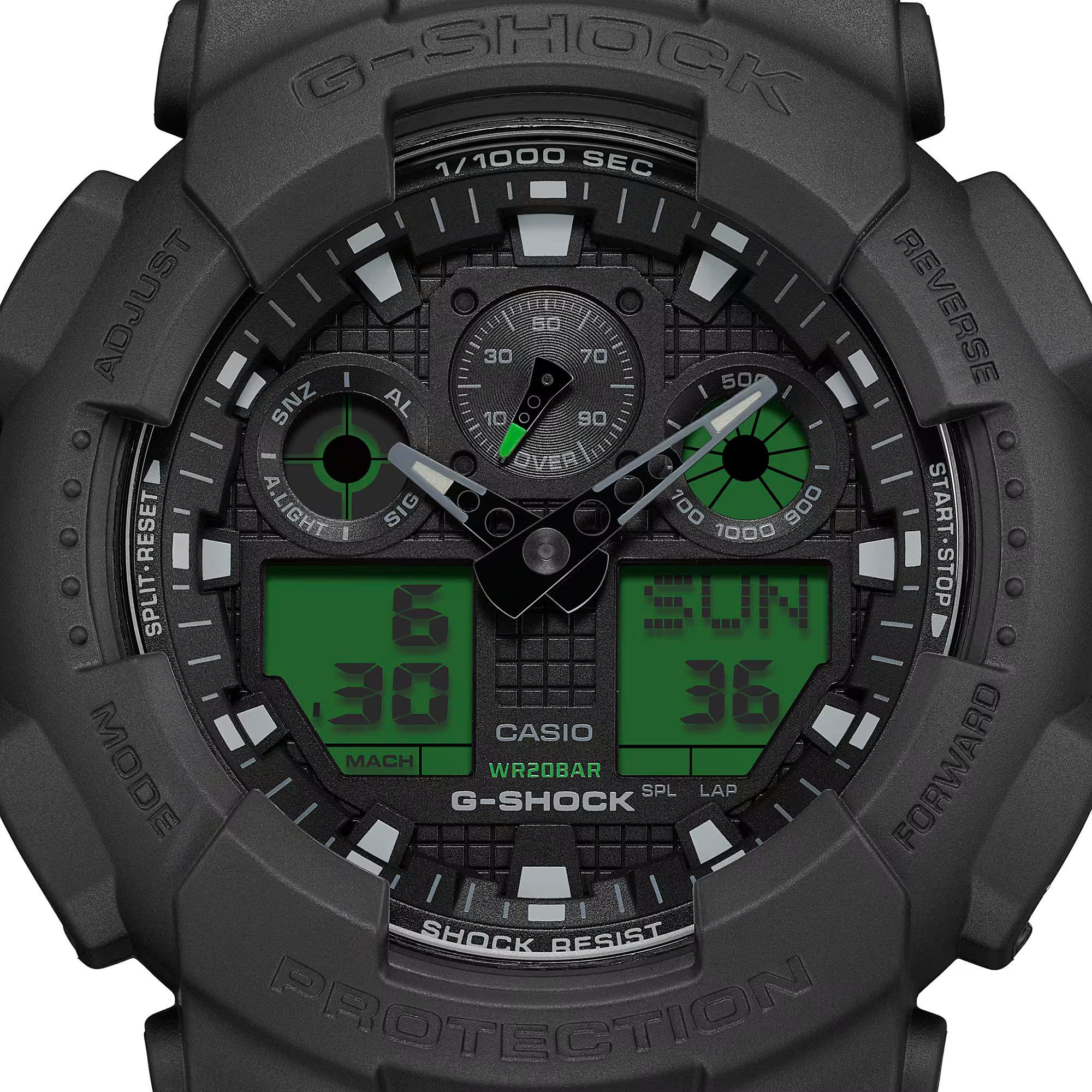 Mạnh mẽ, năng động, tràn đầy năng lượng — Khám phá nguồn năng lượng của chiếc đồng hồ G-SHOCK với phối màu đen và xanh lá điện tử nổi bật.