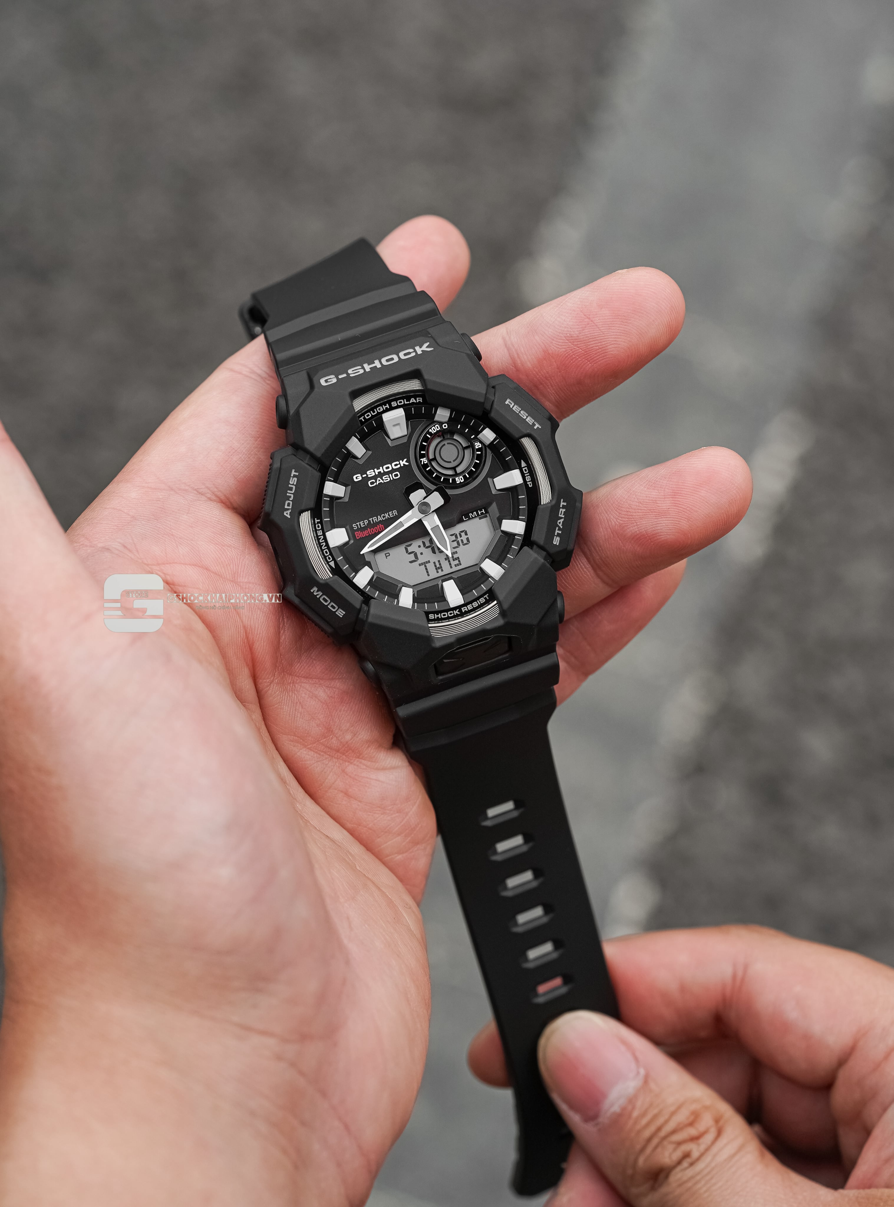 Giới thiệu chiếc đồng hồ chỉ chạy bằng năng lượng mặt trời, có khả năng theo dõi và hiển thị số bước. Sự kết hợp kim-số của GA-B010 sở hữu vỏ lớn với màn hình lớn, dễ đọc. Các chi tiết hoàn thiện tinh xảo — với vòng gờ được xử lý bằng phương pháp lắng đọng hơi nước, mặt số được hoàn thiện bằng tia nắng mặt trời và mặt số chìm được hoàn thiện bằng kim loại — tăng thêm giá trị cho thiết kế hướng đến sự bền bỉ. Chiếc đồng hồ này chỉ cần năng lượng mặt trời để đếm số bước và hiển thị dữ liệu theo dõi trên màn hình kỹ thuật số. Đồng hồ cũng gửi dữ liệu đến điện thoại thông minh được ghép nối qua Bluetooth®, mang đến đầy đủ chức năng trong tầm tay bạn. Chỉ cần chạm vào ứng dụng CASIO WATCHES để tự động hiển thị giờ chính xác và dễ dàng quản lý nhật ký cuộc sống từ điện thoại. Chiếc đồng hồ này có các tính năng tiện dụng như giờ thế giới và đồng hồ bấm giờ, cũng như đèn LED độ sáng cao có thể bật và tắt bằng nút lớn ở mặt trước của vỏ đồng hồ. Các vạch chỉ giờ và kim đồng hồ được hoàn thiện bằng chất liệu phát quang đảm bảo khả năng hiển thị ngay cả trong bóng tối. Chiếc đồng hồ này cũng được làm bằng nhựa sinh học, một vật liệu được kỳ vọng sẽ giảm thiểu tác động đến môi trường. Dễ dàng kết nối bạn từ môi trường thường ngày đến các cuộc họp kinh doanh, đây là chiếc đồng hồ đáng để bạn tận hưởng trong nhiều năm tới.