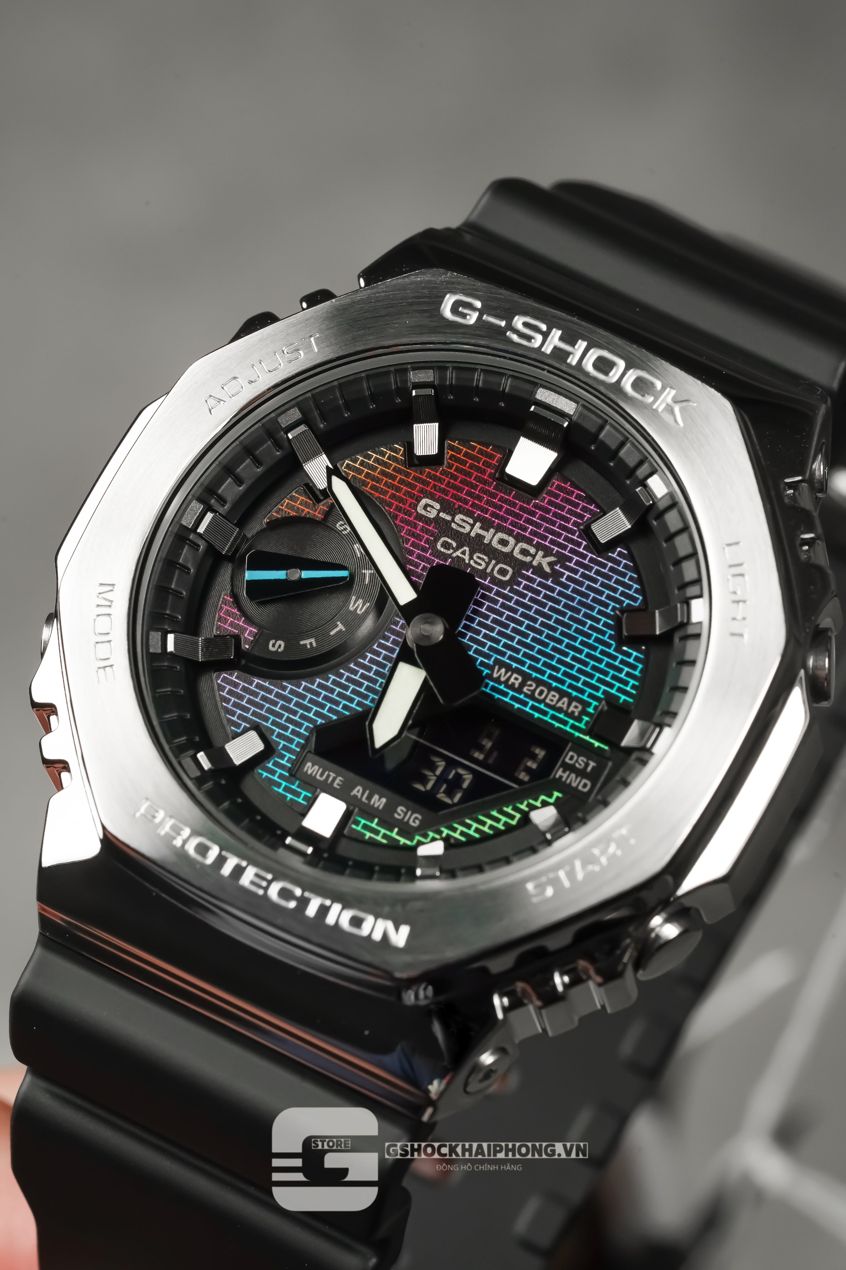 Đầy đủ màu sắc.Quá trình lắng đọng hơi cầu vồng tạo ra hình ảnh bức tường gạch mang tính biểu tượng với màu sắc cầu vồng rực rỡ thay đổi tùy thuộc vào độ sáng. Thiết kế đầy màu sắc trung thành với nguyên bản của mẫu G-SHOCK với tinh thần dẻo dai vượt qua thử thách và liên tục thách thức mọi giới hạn.Bạn có thể lựa chọn mẫu đồng hồ mình yêu thích giữa mẫu 5600 mang tính biểu tượng hoặc mẫu kết hợp đồng hồ số và đồng hồ kim 2100.Đối với các mẫu DW-5600 và GM-5600, mặt kính đồng hồ có họa tiết gạch chuyển màu được tạo ra từ quá trình lắng đọng hơi phân tầng các màu sắc cầu vồng. Đối với các mẫu GA-2100 và GM-2100, họa tiết gạch óng ánh trên mặt đồng hồ được tạo ra nhờ sự kết hợp giữa lắng đọng hơi bạc, khắc laser và in màu cầu vồng.Đây là món phụ kiện thời trang cá tính, đầy màu sắc với thiết kế năng động, gây ấn tượng từ mọi góc độ.