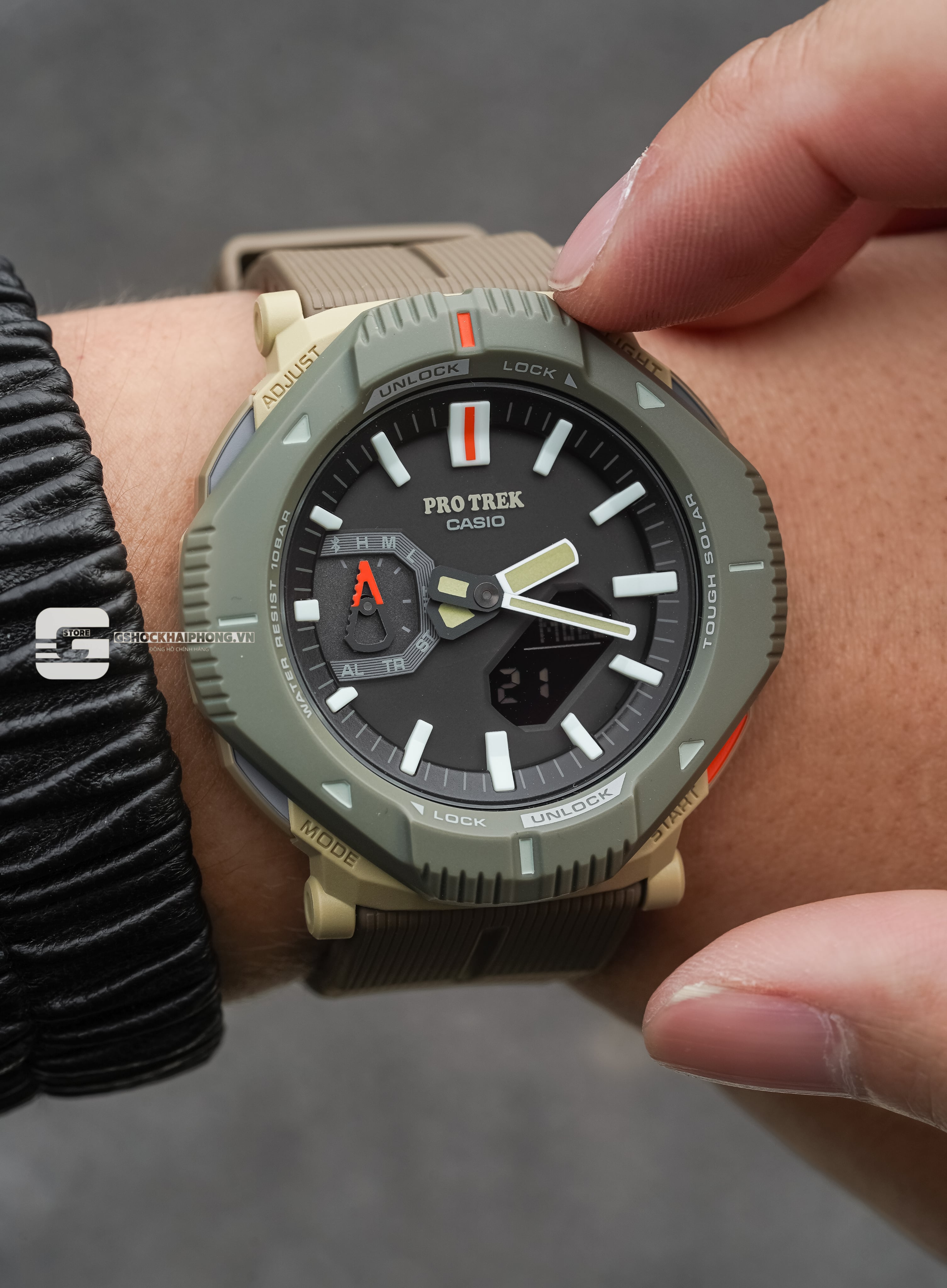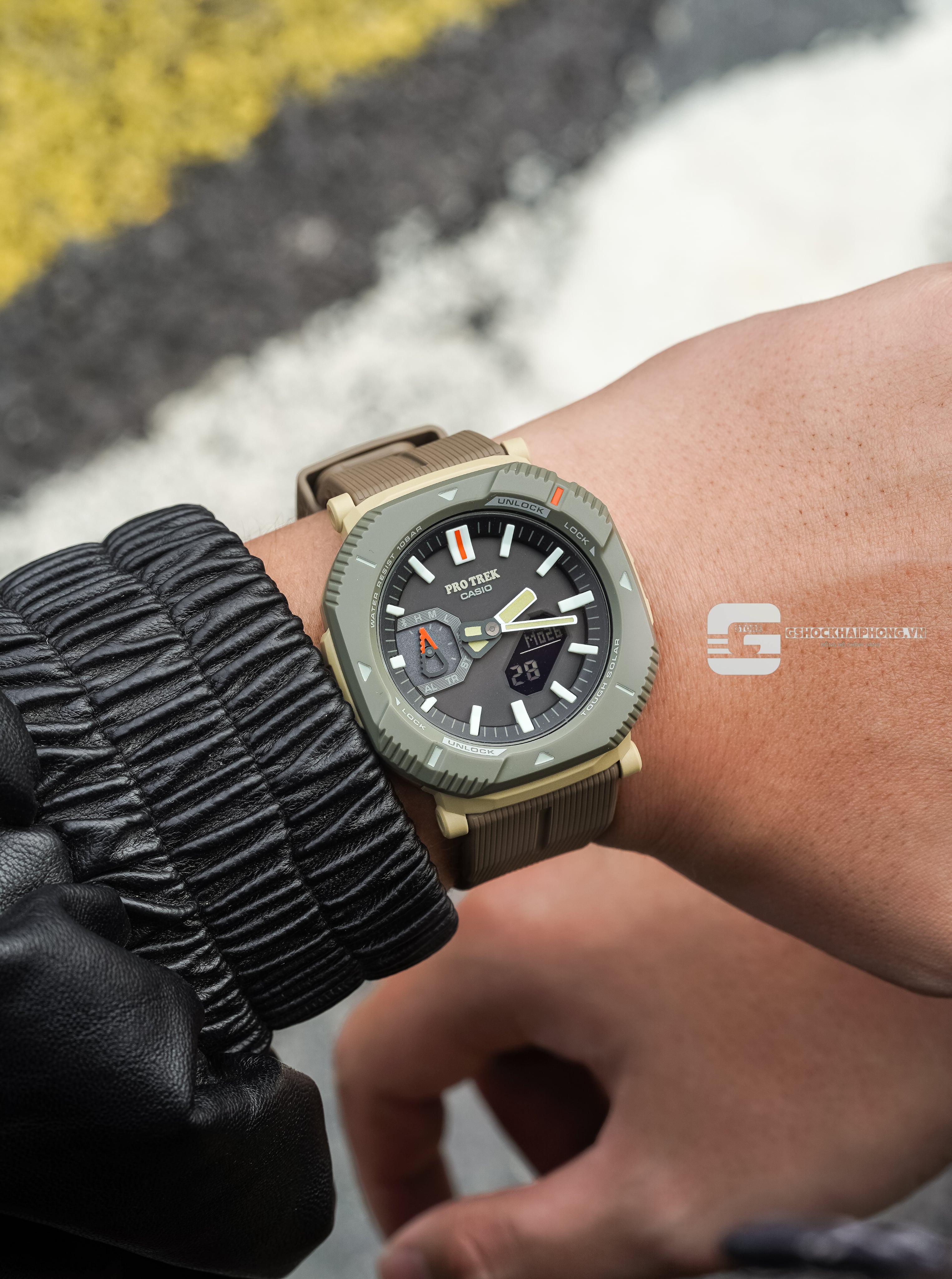 Chiếc đồng hồ giản dị, thân thiện với người dùng mang tông màu đất từ dòng đồng hồ ngoài trời chính hãng PRO TREK dành cho những người yêu thiên nhiên.