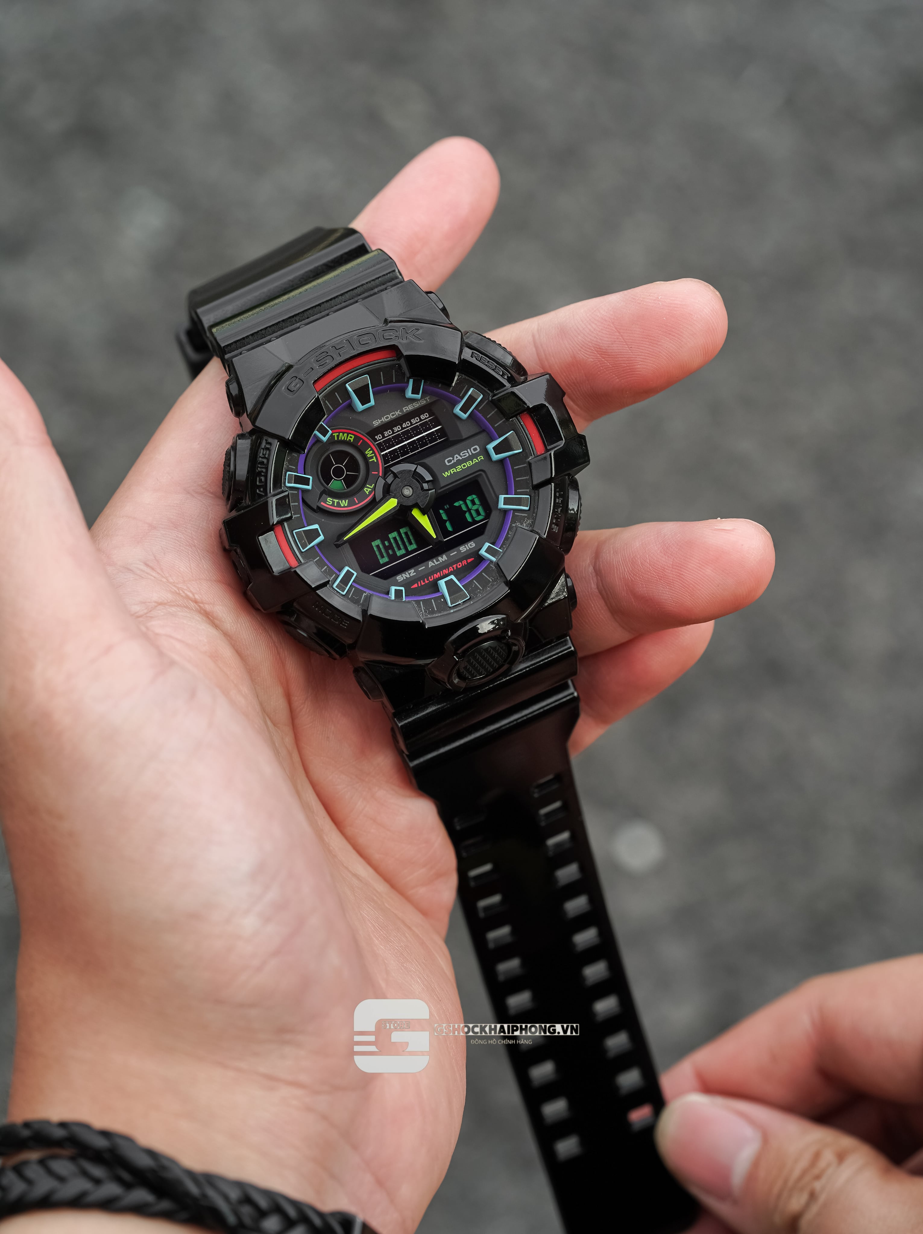Chiêm ngưỡng dòng sản phẩm Virtual Rainbow nhiều màu sắc kết hợp cùng nét thẩm mỹ của thế giới trò chơi công nghệ mạng, đáp ứng yêu cầu về độ bền tối đa của G-SHOCK. Đường gờ và dây đeo màu đen bóng, kết hợp với mặt đồng hồ phủ lắng đọng hơi nước cầu vồng có thiết kế nhiều màu. Kết quả tạo nên một loạt các kiểu dáng táo bạo như lăng kính nhiều màu sành điệu, lấp lánh trong bóng tối. Đây luôn là điểm nhấn được ưa chuộng trong bất kỳ lĩnh vực thời trang nào.