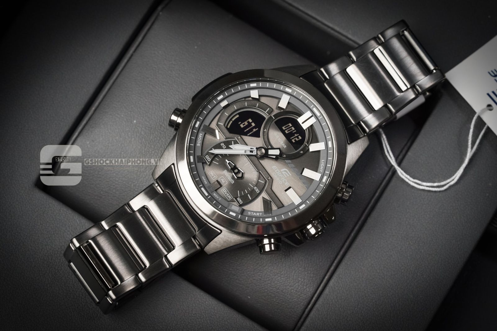 - Casio Edifice ECB-30 khoác lên mình diện mạo hiện đại với những đường nét góc cạnh đậm chất thể thao. Vỏ thép không gỉ cứng cáp kết hợp cùng dây đeo bền bỉ mang đến cảm giác chắc chắn trên cổ tay. Mặt số được thiết kế nhiều lớp, vừa thể hiện sự phức hợp tinh xảo, vừa tạo độ sâu cuốn hút.