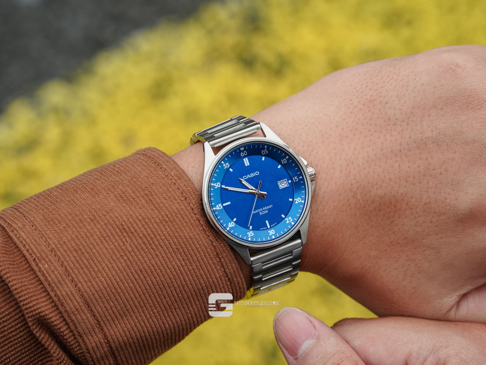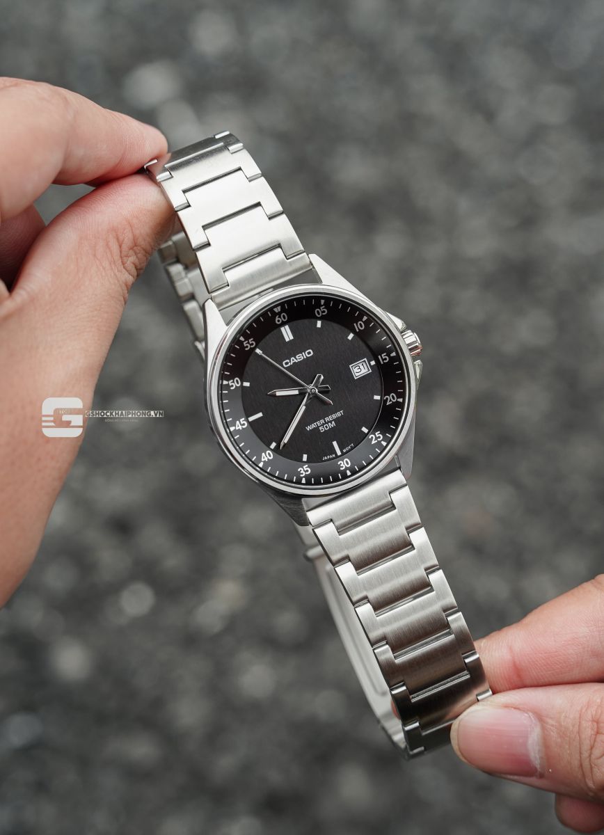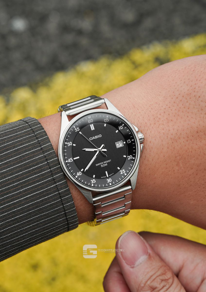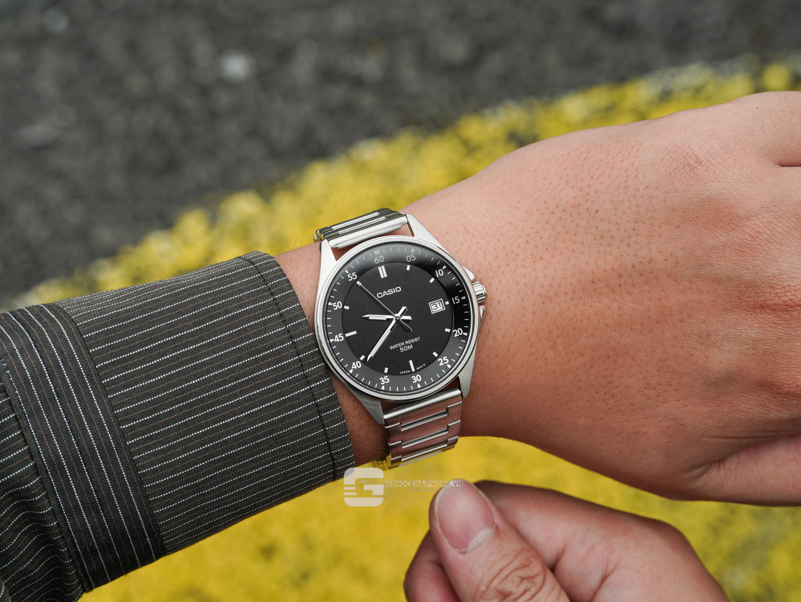 Điểm khiến MTP-E705 ghi điểm đầu tiên là kích thước cân đối. Không quá lớn, không quá nhỏ, đeo lên tay trông gọn và sang. Đây là kiểu đồng hồ mà bạn có thể đeo mỗi ngày, không hề kén đồ và không gây khó chịu khi làm việc.